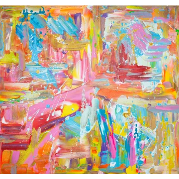 INDRUK VAN EEN “PATCHED BLANKET” SCHILDERIJ, ZWARE LAAG SCHILDERIJ